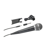 Projetado para uso amador avançado, o microfone dinâmico unidirecional ATR1200x mantém a captação concentrada na fonte sonora, fornecendo uma reprodução nítida e natural dos vocais e instrumentos, enquanto também evita que haja retorno. O ATR1200x possui uma chave liga/desliga e cabo permanentemente conectado de 5 m com um miniplugue de 3,5 mm. Uma opção ideal para uso com máquinas de karaokê, computadores e sistemas de som, o microfone inclui um pedestal de mesa, suporte para pedestal ajustável e um adaptador de 6,3 mm.