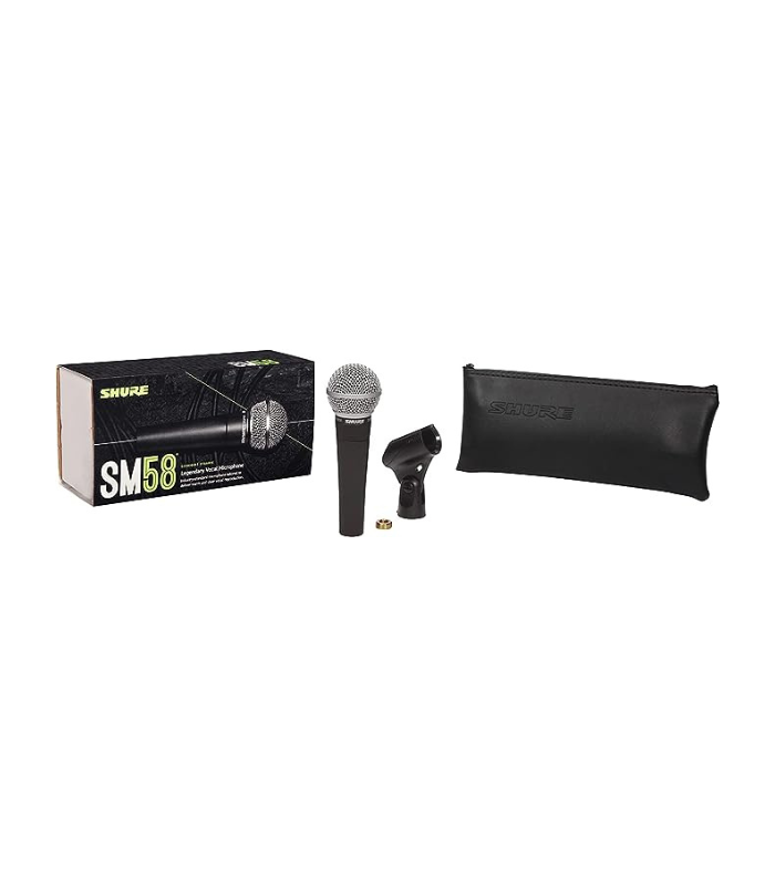 O lendário microfone vocal Shure SM58 dinâmico unidirecional (cardioide) para uso vocal profissional em reforço de som e gravação em estúdio. Um filtro esférico integrado altamente eficaz minimiza o ruído de “pop” do vento e da respiração. Um padrão de captação cardioide isola a principal fonte sonora, minimizando o ruído de fundo indesejado. O Microfone Shure SM58 tem uma resposta vocal personalizada para um som que é um padrão mundial. Construção robusta, um sistema de montagem antichoque comprovado e uma grade de malha de aço garantem que, mesmo com manuseio brusco, o SM58 terá um desempenho consistente. Ao ar livre ou em ambientes fechados, cantando ou falando, o SM58 é a escolha esmagadora de profissionais em todo o mundo. Principais características