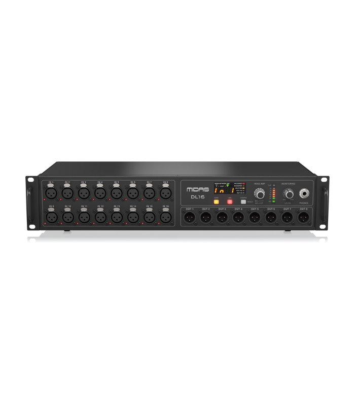 A Midas DL16 é uma stage box digital projetada para oferecer praticidade, conectividade e a lendária qualidade dos preamps MIDAS. Compatível com mesas Behringer X32 e Midas M32, ela é ideal para sonorizações ao vivo, estúdios e instalações fixas.